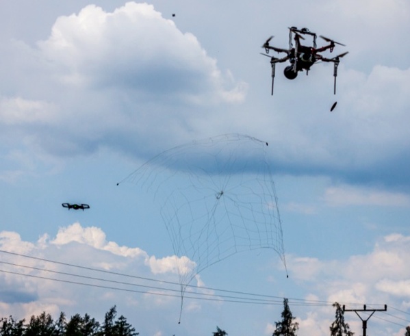 Další fáze představuje zneškodnění vetřelce. S využitím přesného prediktivního řízení dron obranného systému zaujme pozici, která je vyhodnocena jako nejvýhodnější pro použití vystřelovací sítě. Poté se stroj i s uloveným dronem vrací na bezpečné místo přistání.