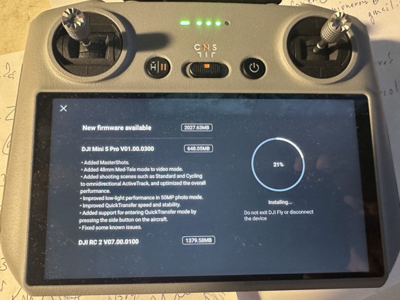 Pak výslech skončí, ale vyhráno nemáte: přestože je stroj úplně nový, ze všeho nejdřív se chce aktualizovat. A rozhodně nejde o nějakou formalitku, protože to trvá asi tak půl hodiny. Nudíte se nejen vy, ale dokonce i dron, protože se pro jistotu během procesu nejméně jednou vypne. Takže ho musíte hlídat, a hned zase zapnout. Jinak se aktualizace samozřejmě přeruší
